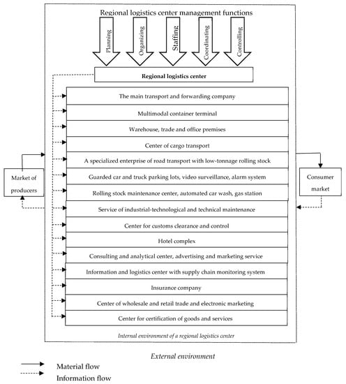 Organizational and functional structure and interrelationship of elements of the regional logistics center. Source: own data.