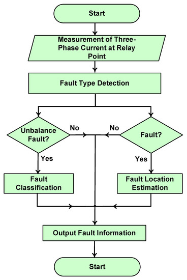 The flow chart of the proposed NIPS is given in Figure 4. The proposed FIPS has four key stages: signal measurement; fault type detection (FTD); fault classification; and fault location estimation. The subsequent subsections explain each stage of the proposed NIPS in detail.