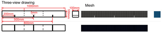 The pipe gallery in the actual project is narrow and long, and the length-diameter ratio greater than 10/1 [45] is often regarded as the large length-diameter ratio. Therefore, we study the deflagration process in a long and narrow channel with an aspect ratio of 10/1 under the disturbance of mixed obstacles. Figure 1 shows the structural model of the experimental duct. The duct size is 100 mm × 100 mm × 1000 mm, which is mainly made of a Q235-A steel plate. The thickness of the steel plate is 5 mm. To facilitate the observation of the flame, a 20 mm thick fully transparent explosion-proof plexiglass panel is installed on the front of the duct. The ignition source is located in the center of the left side of the duct, and there is a pressure monitoring point at 30 mm from the ignition source on the left side. There are three flat obstacles with a thickness of 5 mm and a blocking rate of 0.3 inside, which are 200 mm, 500 mm and 800 mm away from the ignition source.