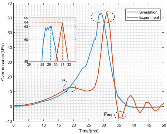 The comparison of overpressure between experiment and simulation.