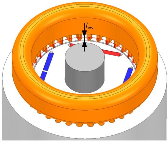 A 3D model of the machine with a visualized shielding winding for lew = 5 mm.