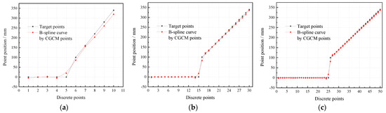 Accuracy verification of generated curve by CGCM. (a) 10 discrete points; (b) 30 discrete points; (c) 50 discrete points.