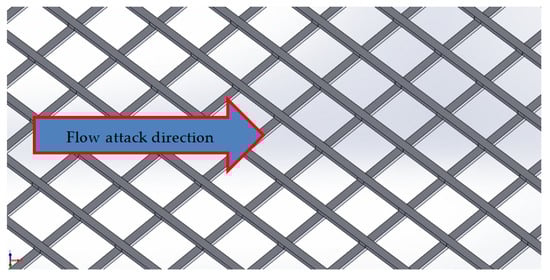 The net-type spaces are common in membrane modules for commercial systems (ultrafiltration/spiral wound reverse osmosis). They can provide structural support to the membrane and, depending on the orientation of the spacer, can also cause the fluid flow to transition from a laminar to a localized turbulent flow regime. In a DCMD module, turbulent flow improves heat transfer. This increases the driving temperature difference, and hence the production of freshwater, and decreases the effect of temperature polarization. The spacer orientation, geometry, and its relation to the flow direction are illustrated in Figure 4.