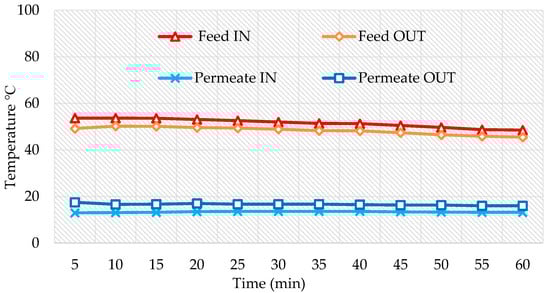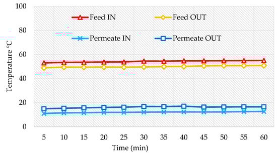 Feed and permeate temperature in case of the empty channel by using 5 L/min.