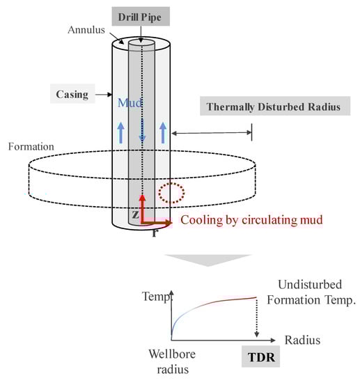 - The circulating mud cools down the formation near the wellbore during drilling, causing the thermal disturbance in the formation. The TDR is the radial distance where the thermal disturbance occurs. Thus, the TDR acts as a quantified indicator of thermal disturbance.