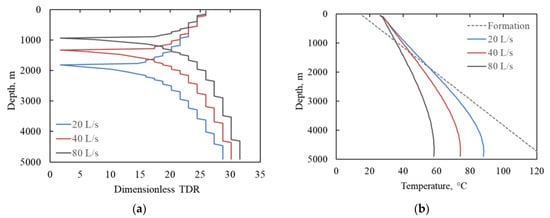 - The TDR tends to increase with the temperature difference between the fluids in the annulus and the formation, evidenced by the largest TDR being observed at the bottom hole.