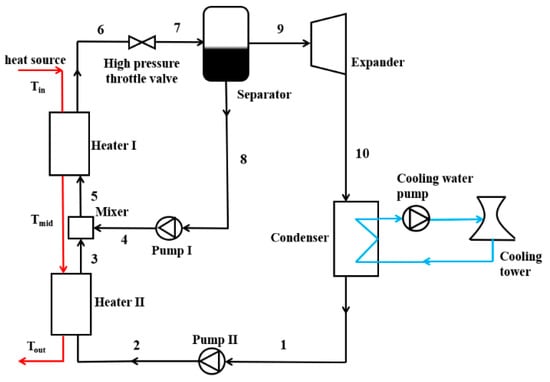 - Liu, X.; Li, H.; Bu, X.; Wang, L.; Xie, N.; Zeng, J. Performance characteristics and working fluid selection for low-temperature binary-flashing cycle. Appl. Therm. Eng. 2018, 141, 51–60. [Google Scholar] [CrossRef]