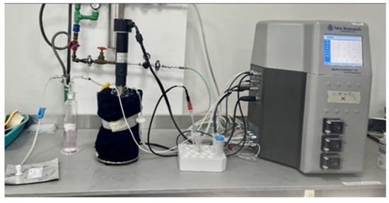 Before starting the experiments, the connection between the bioreactor and other parts should be made by connecting the pipes correctly based on Figure 3, as shown in model of the study [34]. In this model, the connections are very important, and they should be made in a proper way to prevent any leakage during the experiment in order to obtain the correct results [35]. Figure 4 shows how the connections are made correctly in the experimental set-up in the Germany University laboratory (GUtech lab, Oman) [36].
