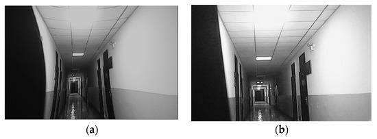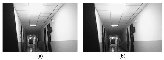 Figure 2 shows the image before and after the distortion correction. It can be seen that the monocular camera had a more obvious pillow-shaped distortion, which could better recover the real scene after the correction.