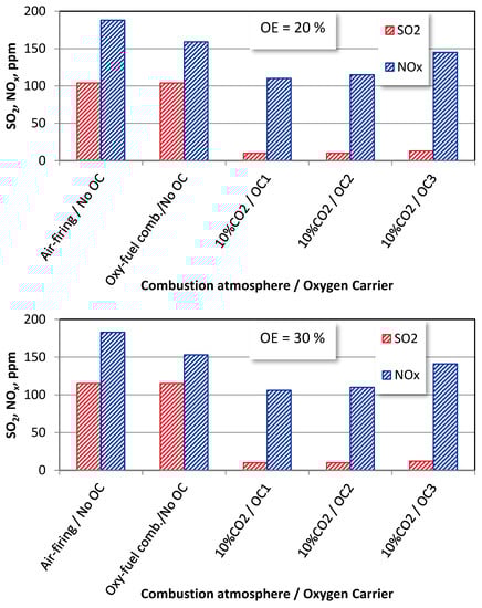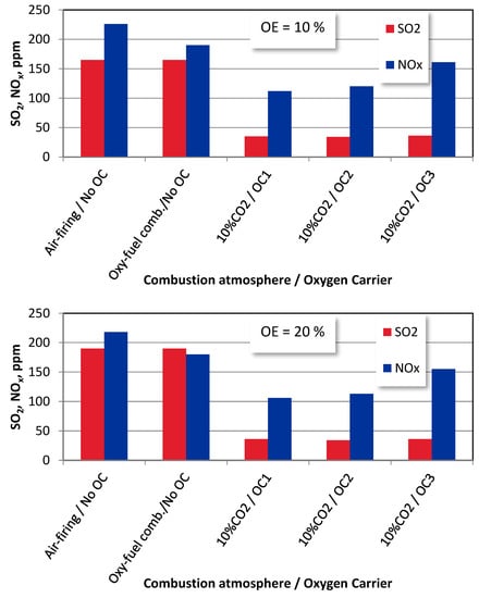 - The SO2 and NOx emissions strongly depend on the properties of the oxygen carriers used in the systems and operating parameters.