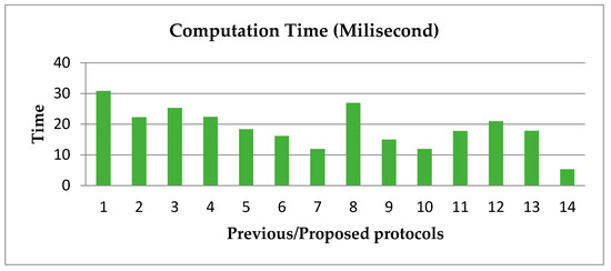 - The Protocol [43] utilized 544 bits, Which is approximately 48.48% lower than the proposed protocol