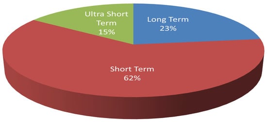The distribution of articles reviewed into long-term, short-term and ultra-short-term predictions.