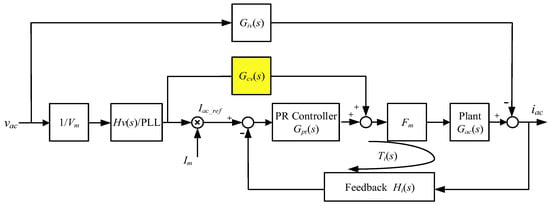 where Hv(s), Giv(s), Gcv(s), Gac(s), Fm, Vm, and Ti(s) are the PLL gain, the current and voltage admittance terms, the plant transfer function, the controller gain, the amplitude of the grid voltage, and the open current loop transfer function, respectively. The open current loop transfer function can be expressed as: