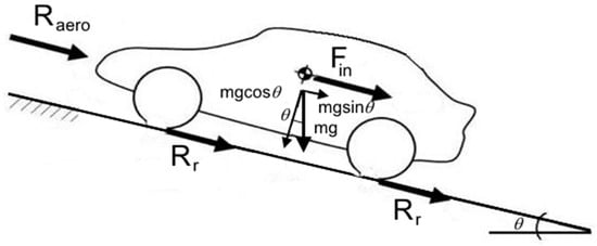 - Aerodynamic resistance is generated by fluid–dynamic interactions between the vehicle and air in motion. It is basically due to the air–surface friction, high-low pressure differences, and vortex generation in the rear low-pressure zone, where the separation of the boundary layer from the aerodynamic surface is frequent. Aerodynamic resistance is modelled according to the aerodynamic drag Formula (5):where all parameters involved are briefly reported and the meanings are explained in Table 2.