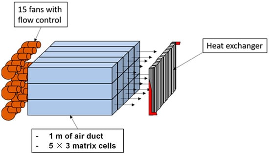 - Fifteen 100 W fans, capable of providing an air velocity up to 13 m·s−1 through each cell (discretized duct).