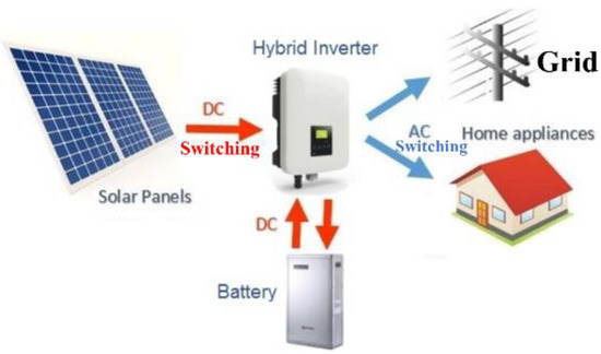 The proliferation of inverter-based renewable generation resources, as sketched in Figure 4, results in low-inertia systems. The control and management of the system including stability and load frequency control are challenging [9,10,11,12,13,14].