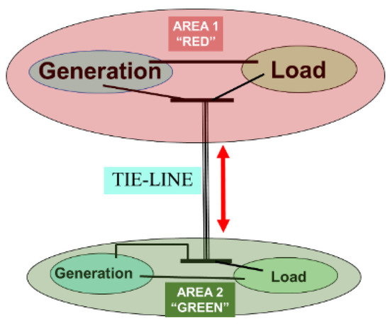 Specifically, for the load frequency control problem the systems analyzed have either two control-areas as shown in Figure 5 or three control-areas. For the two-area system, the areas are classified as Red or Green Areas. These colors are adapted in the figures; red for Area 1 and green for Area 2. The purple color is also used to represent the interchange tie-line power. The tie-line power is a line that connect the control areas and the power flow on this line is preset, based on an agreement between the areas.