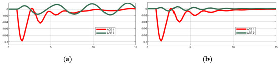 (a) ACEs (red: ACE 1, green: ACE2), Case 1. (b) ACEs (red: ACE 1, green: ACE2), Case 2.