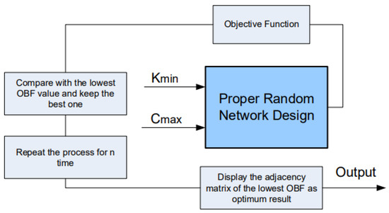 A data-driven control system uses a network of connected nodes to share data from across the network. The shared data will then be utilized for a consensus agreement problem. To satisfy the required constraint on agreement time delay, specific limits need to be considered while designing the communication network. The first constraint is related to the permissible communication expenses, Cmax, and the second one is the essential connectivity requirement, Kmin. In [19], an algorithm is suggested for sketching a digraph with n nodes and the optimum number of edges, contingent on the permissible communication expenses, and the essential connectivity requirements. The outlined diagraph will then demonstrate the connections between the nodes and describe the elements of the adjacency matrix only by ones and zeros (zero refers to no communication link). This procedure is shown in Figure 18, which illustrates the flowchart related to the aforementioned optimum network design.