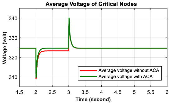 Average Voltage of Critical Buses with and without ACA after a Load Change at Bus 4.