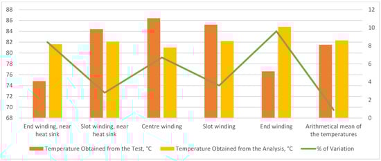 Han et al. [] carried out the analysis of a high-speed water-cooled IM using LPTN methods. The heat transfer coefficients of the water jackets channel and interface amid the core of the stator and frame were an influential factor, since the motor was a water-cooled type. Further, from Table 8 it was observed that the temperature of the trailing part of the end winding was greater, in contrast to the front part, since it had a minute gap with the housing. The authors concluded by stating that if the important parameters, such as interface gap and heat conductivity of the materials are properly selected, accurate distribution of temperature can be achieved from the LPTN method.
