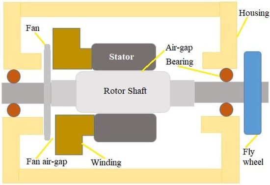 Electric motors find their application in a wide range of industries from home appliances to transportation, including automotive and aerospace applications. A special type of motor called the induction motor has gained importance in recent times due to its high commencing torque, adequate speed regulation and reasonable overload capacity []. The mechanical power is produced due to the interactions between the magnetic field by the stator winding and the cage bar []. Moreover, IMs are a type of non-magnetic motor, thereby proving to be a promising option because of the shortage of rare-earth metals. However, a major drawback of IMs is their inherent thermal problem wherein the lifespan and efficiency are dependent on temperature []. The Arrhenius equation states that the lifespan of the entire motor is halved every time the functioning temperature is increased by 10 °C [].