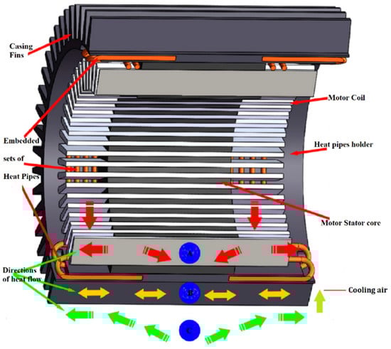 Schematic of L-shaped flat heat pipes mounted on an electric motor model [].