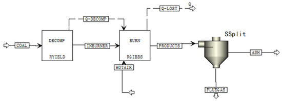 In this paper, the proposed model is used to analyze the exergy loss of a 350 MW boiler in a power station and optimize the structure to minimize exergy loss during combustion. It is important to note that the critical point of the study introduced in this paper is the calculation of the exergy loss distribution using Aspen plus to redesign the boiler structure. The research contents of this article are as follows.