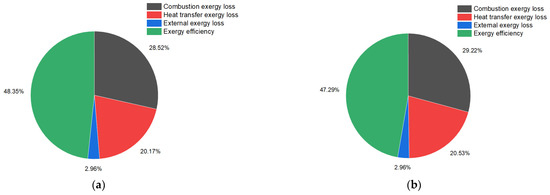 The boiler external loss can be calculated according to the thermal efficiency of the boiler. The exergy loss of the exhaust gas is calculated with its temperature.