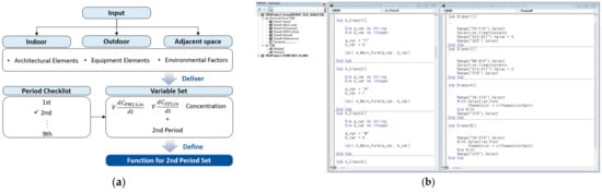 This program was designed with VBA and executed with Microsoft Excel. Figure 3 shows the research process of this study for diagnosing changes in pollutant levels depending on the space and activities conducted in it.