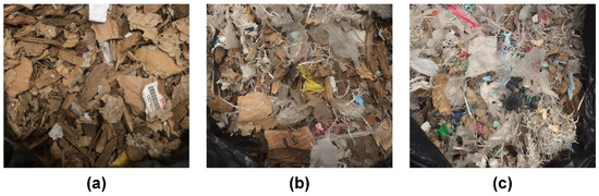 Illustrations of the prepared mixtures: (a) SRF1, (b) SRF2 and (c) SRF3.