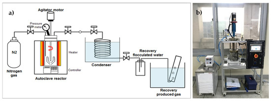 Lab-scale hydrothermal carbonization reactor: (a) schematic and (b) photograph.
