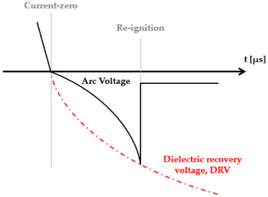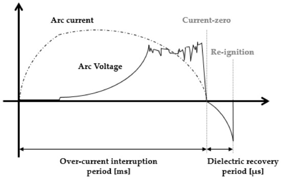 Figure 12 shows a schematic diagram of the re-ignition that occurs after current-zero. When re-ignition occurs, the waveform of the arc voltage shows a form in which the dielectric breakdown occurs and the arc current is re-formed.