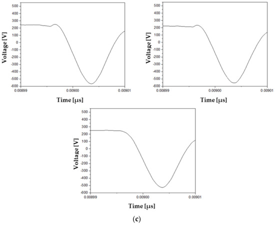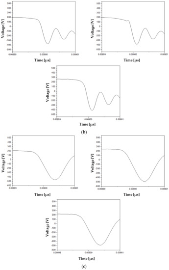 0 capacities are 0.47 μF, 1 μF, and 10 μF, respectively, and are related to the time when re-ignition occurs. The experimental waveform according to each C