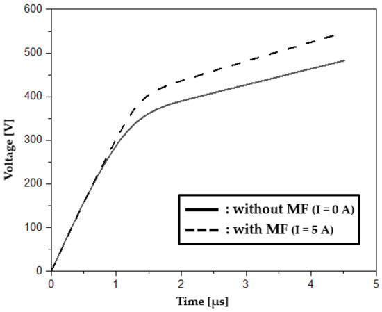 Figure 15 shows the V-t curve of the DRV without external magnetic field (I = 0 A) and with external magnetic field (I = 5 A)