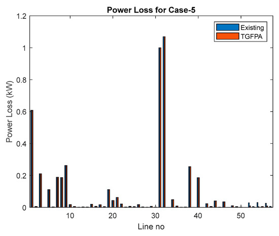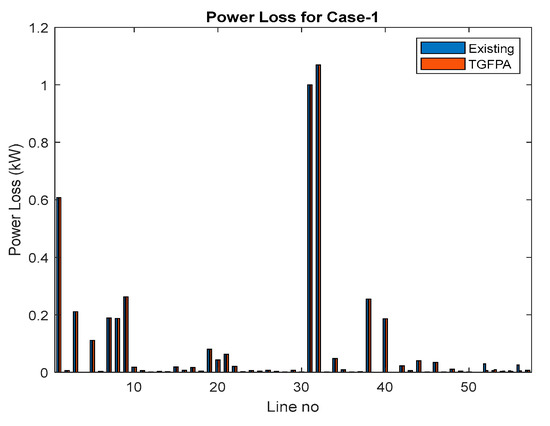 The IEEE 33-bus system is used to evaluate the performance in five cases. The average active PL is determined to be 284.20 kW. It is reduced with the help of the TGFPA. It is also studied using the IEEE 119-bus system in five scenarios. The system’s total reactive and actual power loads are 17.04 Mvar and 22.70 MW, respectively. The TGFPA helps to reduce the PL. However, network reconfiguration is then served with the help of TGFPA. The TGFPA method is compared with other methods. According to the comparison analysis, it achieves excellent results for decreasing PL.