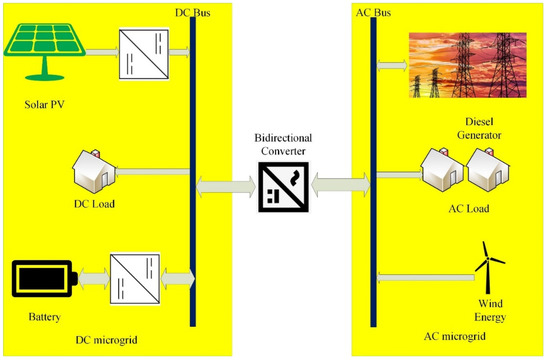 - Javad, K.; Gerry, M. Simplified Hybrid AC-DC Microgrid with a Novel Interlinking Converter. IEEE Trans. Ind. Appl. 2020, 56, 5023–5034. [Google Scholar]