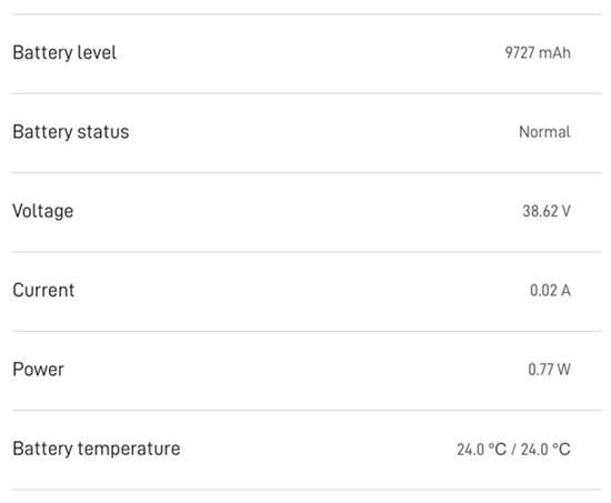 The parameters presented in Figure 1 include the amount of energy remaining in the battery, voltage values, and current intensity, which are the main factors necessary to determine the energy consumption value of a moving vehicle.