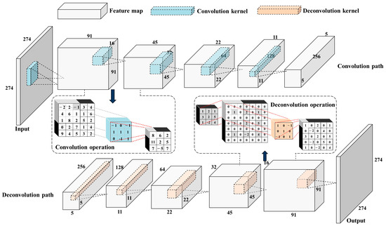 The transpose convolution operation is performed in the deconvolution path, which is one special convolutional operation and similar to the convolution operation. Generally, a padding process is required to expand the matrix dimension before transposing the convolution calculation. The subfigure of Figure 2 briefly explains the method on how to convolve and deconvolve a matrix in 2D—please refer to [47] for more details.