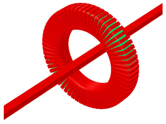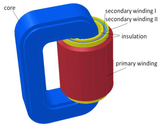 The numerical analysis was performed using the 3D field-circuit method by combining Maxwell’s equations in the physical area of the instrument transformer with the equation for the circuit with the load connected to the secondary terminals of the instrument transformer [10,11,12,13,14,15,16,17,18,19,20,21,22,23,24,25,26,27,28,29,30].