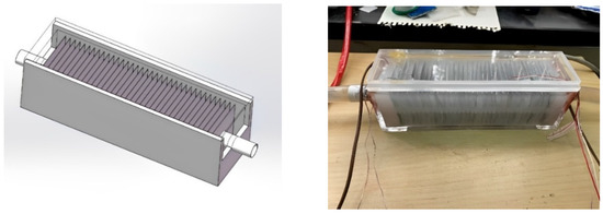 Figure 2 depicts a configuration of the specific PCM unit utilized. The geometric structure of the PCM unit was considered as a rectangular shell-and-tube thermal accumulator with a single tube and rectangular fins. The PCM was kept in the rectangular space between the finned tube and the shell. In addition, the finned tube and shell were concentrically placed. The tube was composed of copper and the fins were composed of aluminum due to the excellent thermal conductivity. The outer shell was composed of organic glass for better visualization of the melting performance. The rectangular space was filled with paraffin wax and the HTF flowed through the finned tube from right to left. Table 2 shows the geometric parameters of the PCM unit.