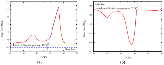 DSC results of the paraffin wax. (a) Melting; (b) solidification.