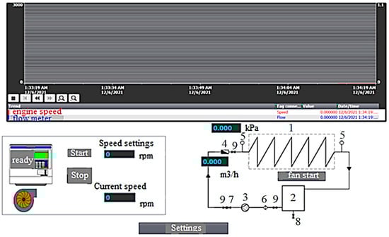 3.2. Diagrams of the Hydraulic and Aerodynamic Systems of the Stand