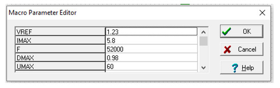 The integrated switching voltage regulator LM2576 serves to show a graphical presentation of the model. An interactive dialog box allowing the main parameters of the model to be changed in the graphical presentation of the model is shown in Figure 3.