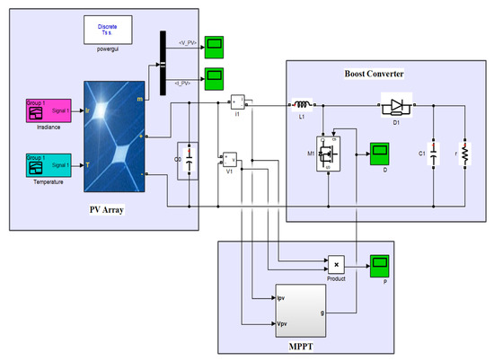 Finally, the MPPT output is connected to the boost converter. The structure of this controller is shown in Figure 2.