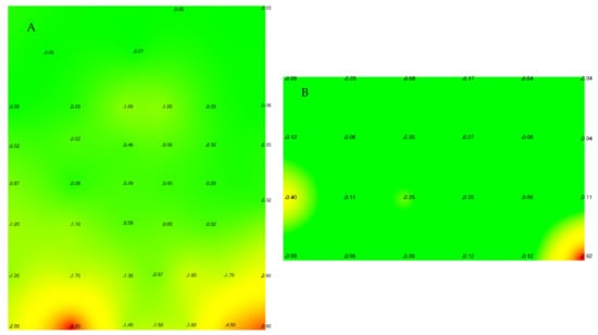 Radiation maps of rooms “A” and “B”.