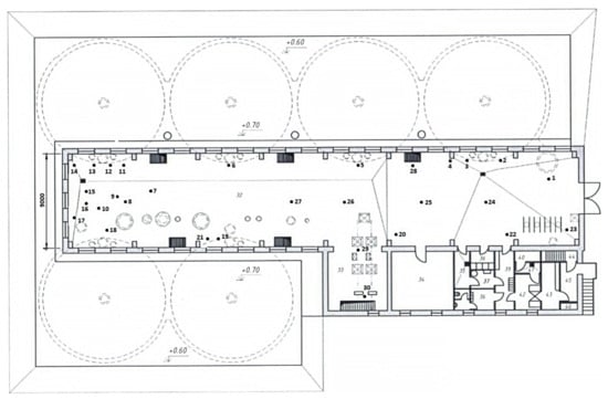 Based on the radiation situation data, optimal routes were determined when visiting the specified points in various rooms, for example, rooms of a finally stopped for decommissioning NPP unit with a pressurized light-water-moderated and cooled reactor VVER-210 (Figure 4) [].