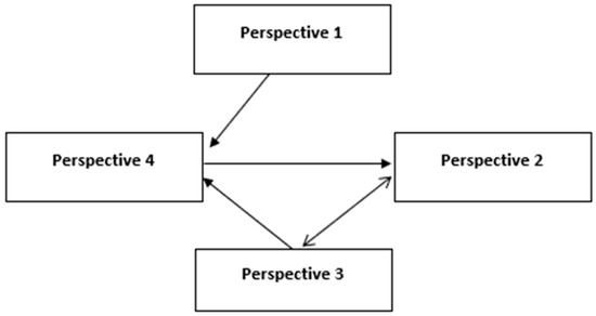 The relation matrix is created as in Table A11. This matrix gives information about the comparative relations among the perspectives. A stable matrix is created in Table A12. Stable values are identified by transposing and limiting the matrix with the power of “2t + 1”. These values are taken into consideration to calculate the weights of the criteria. Causal directions are indicated in Figure 2. In this study, some improvements are made to the SWARA method. As a result, a new technique can be created by the name of M-SWARA. The main contribution of this new method is that the causal relationship between the factors can be evaluated. This situation provides an opportunity to create an impact relation map between the items. This condition helps to create more appropriate strategies for the companies to improve distributed energy projects.