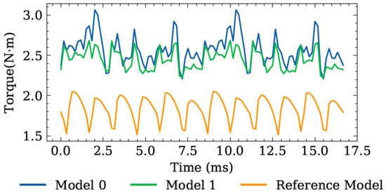 Comparison of torque performance among Model 0, Model 1, and reference model.