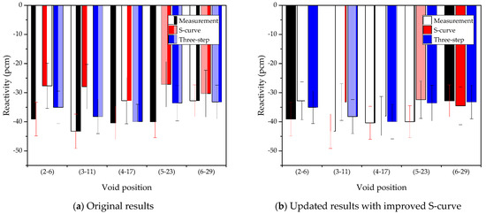 Comparison of sodium void reactivity for two cases: (a) original results and (b) updated results.